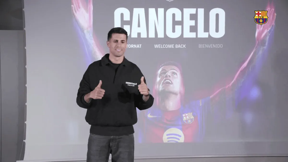 虎扑01月13日讯 若昂-坎塞洛以租借形式从利雅得新月足球俱乐部加盟巴萨。在出席亮相仪式和接受媒体采访时,这位葡萄牙后卫难掩重返巴萨的激动之情。